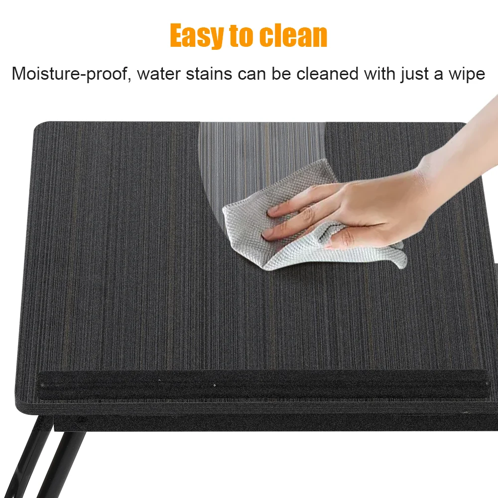 Platzsparendes Design: Die Beine lassen sich im Handumdrehen einklappen, sodass der Tisch nach der Benutzung mühelos unter dem Bett oder hinter dem Schrank verstaut werden kann.
