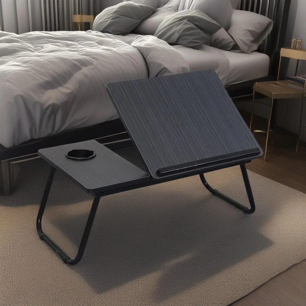 Feriales Betttisch klappbar & höhenverstellbar – Multifunktionaler Laptoptisch für Bett & Sofa mit Getränkehalter – Tragbarer Computertisch Schwarz
