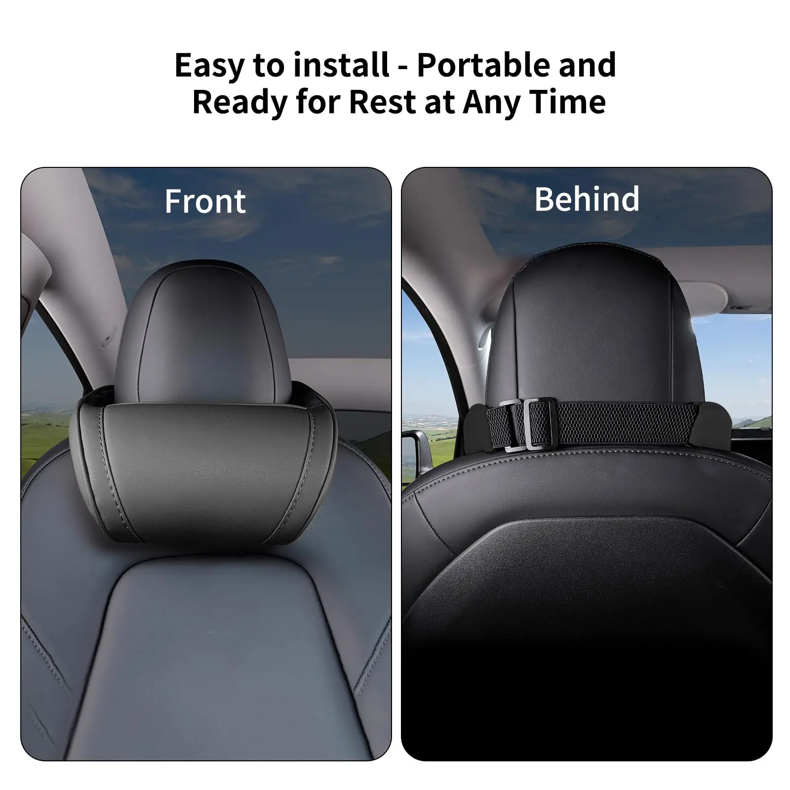 Ein-Schritt-Installation: Dank des praktischen Elastikbandes lässt sich das Kissen in Sekundenschnelle ohne Werkzeug montieren. Einfach über die Kopfstütze schieben, ausrichten – fertig.