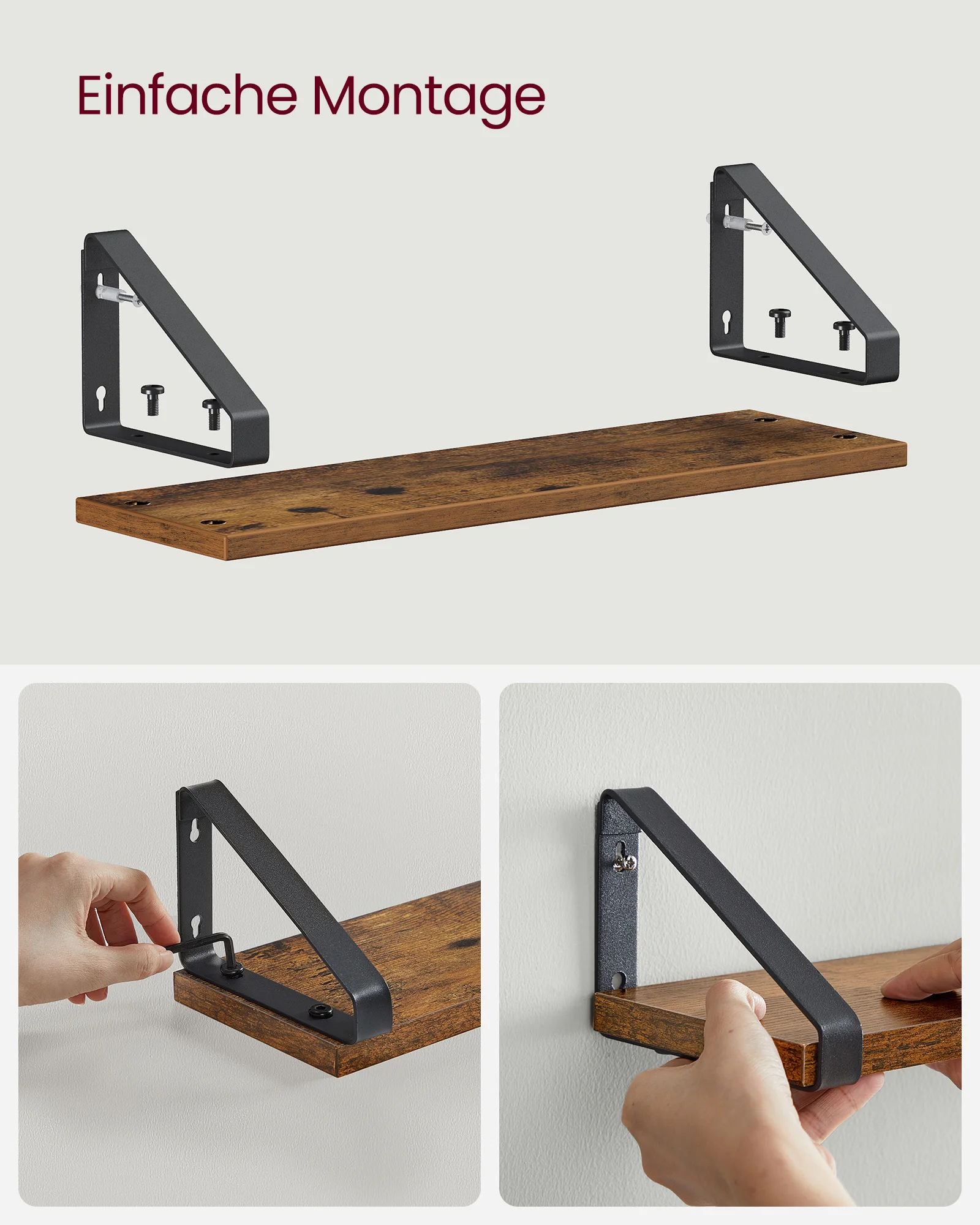 Feriales Wandregal 3er Set Industrial Design Schweberegal Holz & Metall Vintage Deko Regal für Wohnzimmer Küche Dunkelbraun
